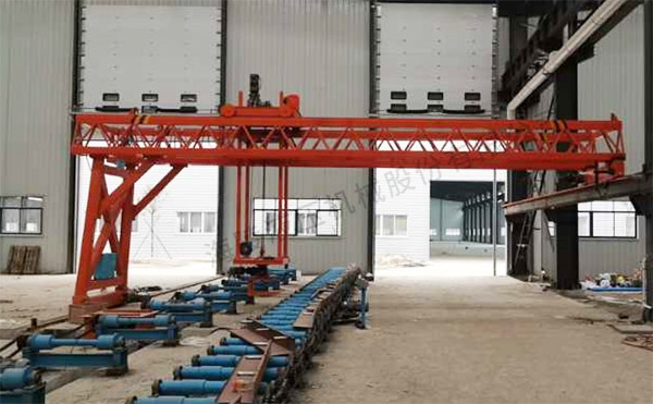 2、行走航架通過(guò)行走電機(jī)驅(qū)動(dòng)減速機(jī)帶動(dòng)鋼軌輪旋轉(zhuǎn),該電機(jī)帶剎車(chē),可在任意位置剎車(chē)并停止行走。